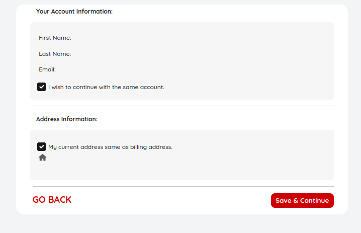 3.if you want to change the details and address, uncheck the check boxes and enter the all required details and Click on save & continue Button.